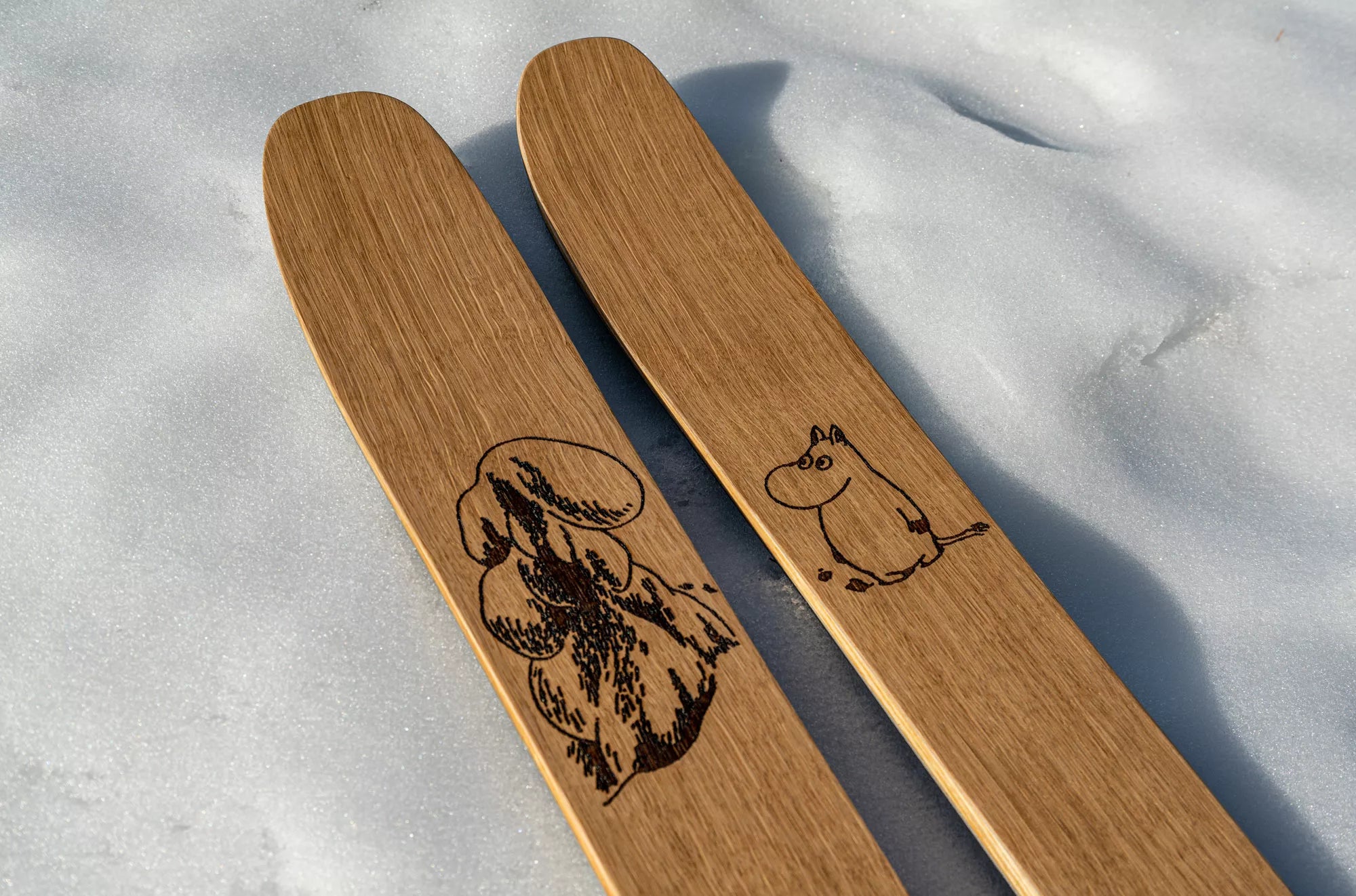 PUSU Kelo Moomin is the perfect choice for skiers who value Finnish craftsmanship, natural materials, and fun on the slopes. Imagine yourself descending snowy slopes on skis featuring Moomintroll adventuring in a winter storm – what could be more enjoyable?
