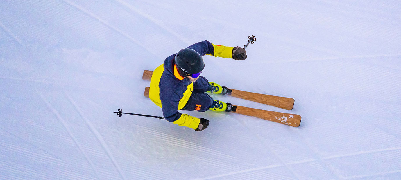We finish our skis with genuine, responsibly sourced wood veneer, giving them a natural and unique appearance. Each ski is one-of-a-kind, making our skis particularly valued and desirable. Additionally, the careful design and craftsmanship ensure excellent performance in various conditions.